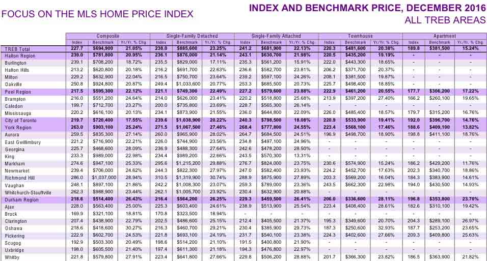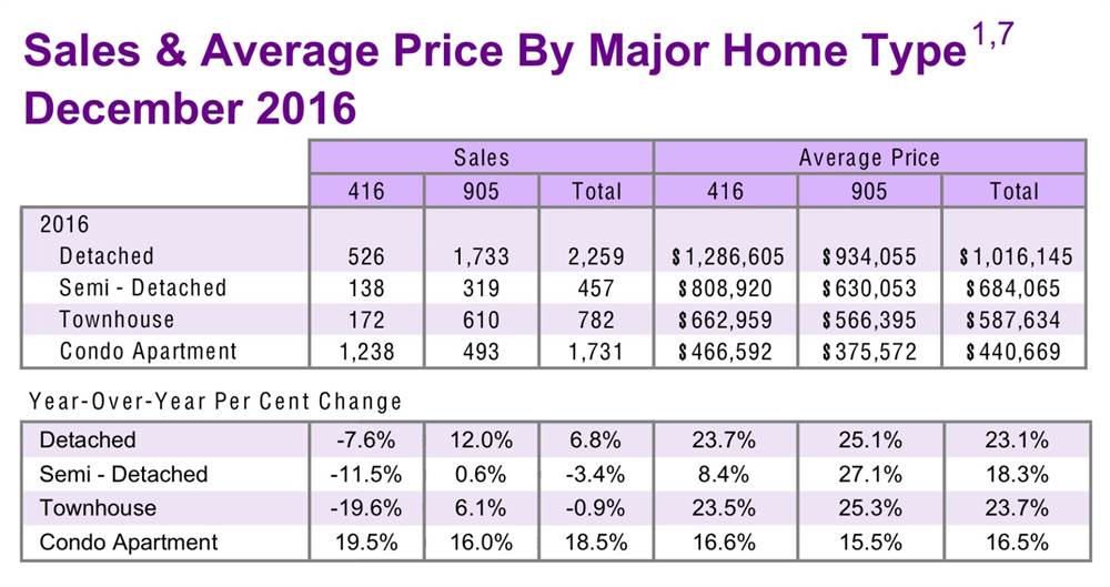 刚刚过去的2016年注定是多伦多地产市场发展历程中值得重点泼墨的一年。笔者在写这篇文章的时候,希望更多的是从人性的角度,从不同的人的逻辑思维特性分析现在的市场,看待目前的多伦多房市。先讲一个在多伦多的华人微信圈里疯传的笑话:一位地产经纪年底感慨:今年赚了100多万!他说:是因为年初的时候苦口婆心劝客户买房,客户犹豫,不买。咬咬牙,自己买了两套、、、到了年底,涨了!生活在多伦多的人们都知道一个不争的事实:那就是,多伦多的房价涨了,而且涨的幅度不小。到底涨幅在一个什么程度,让我们做一个来自官方TREB的概括总结: