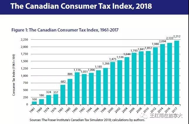 都说加拿大的税太高,究竟有多高呢?菲沙研究所给出了一个清晰的答案:加拿大人家庭收入的43%都用于交税了,只有36%用于生活必需品,包括衣食住等三项,剩下21%用于交通、教育、医疗和储蓄。2017年加拿大人家庭平均收入为$85,883,交税的金额却高达$37,058。早在56年前的加拿大,1961年,加拿大家庭年收入$5000,各种税赋为$1675,税务负担只占家庭收入的33.5%。 56年来,税务负担增加了近10%。“万税之国”“政府税你没商量”“税税平安”各种调侃,成了加拿大人互相揶揄的家常佐料。菲沙研究所是加拿大公共制度评论机构,其报告严谨权威。这份税务负担研究报告的结论如下:1961年到2017年,消费物价指数上涨了731%,税务负担上涨了2112%,居住开支上涨了1480%,衣服等穿戴开支上涨了732%,食物开支上涨了625%,剔除通胀因素,税赋支出增长了166.4%。