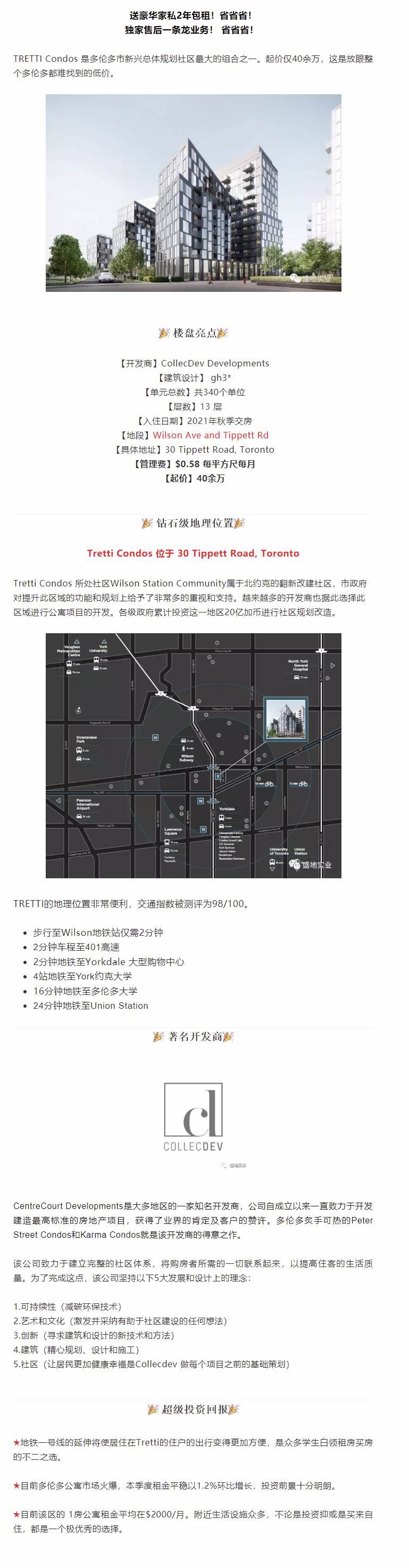 【盛地VIP代理】北约克Wilson地铁站附近Tretti全新楼花项目,叫价仅40万起!