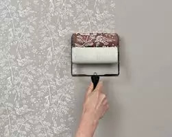 4. 最后将壁纸裁切之后,上壁纸专用胶,以滚筒或刷子均匀上胶,然后上墙,这些动作都是连贯的。值得注意的是,上胶后贴壁纸时,在边缘地方以刷子或滚筒由里往外刷,绝对不可以由外往里刷,因为当壁纸固定由里往外刷,多少会有空隙,这空隙间的空气,使壁纸刷平之后,会出现皱褶,所以,必须由里往外刷。