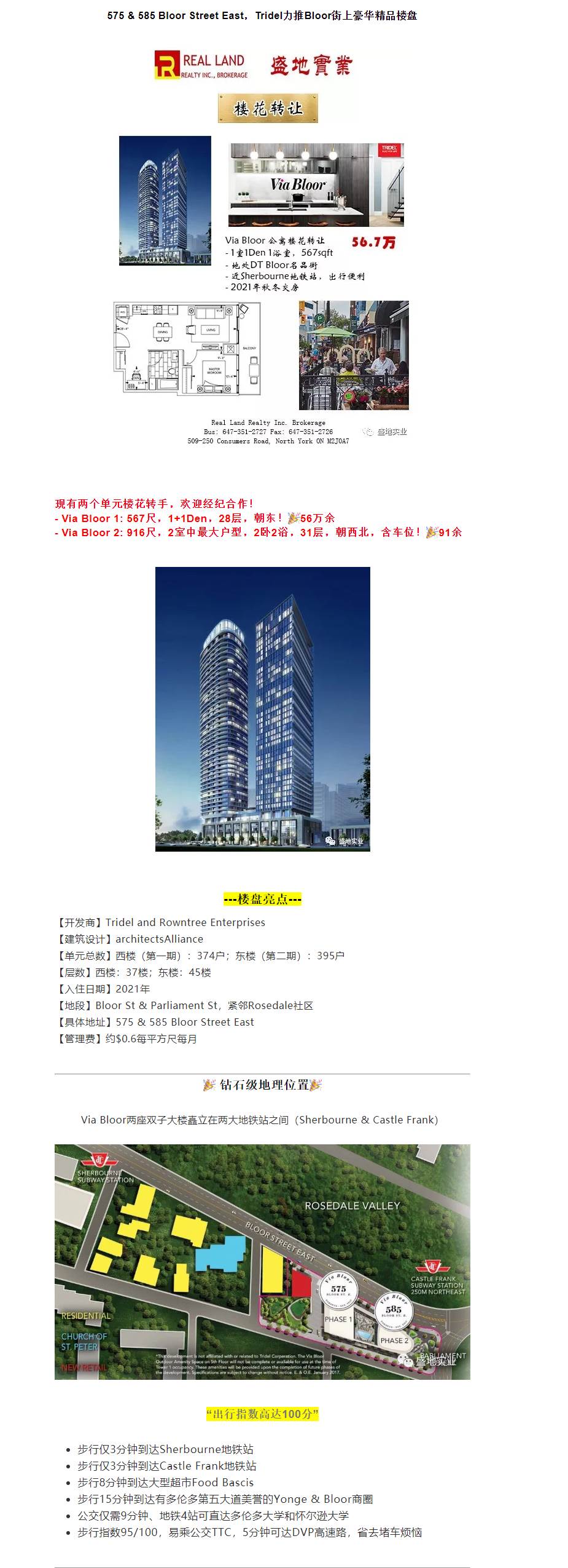 【盛地楼花团队】独家!Via Bloor多户转让50余万起,多市中心精品豪华楼盘