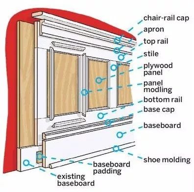 另外木阴角线除了用在天花处外,还可以做墙面造型如墙裙、护墙板。这些地方您同样可以使用MDF(中密度板)等材料。