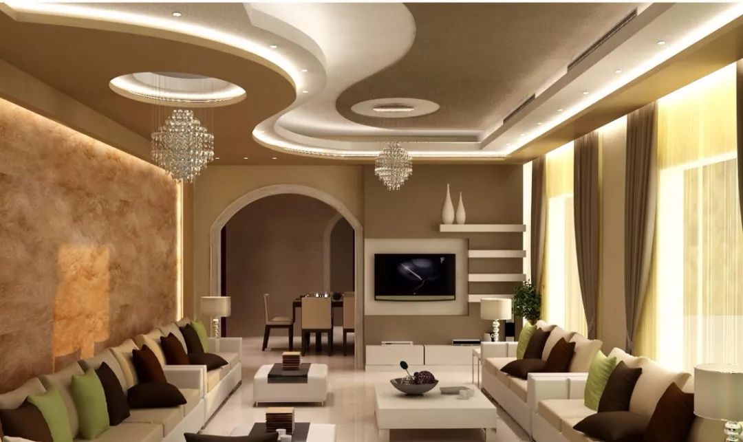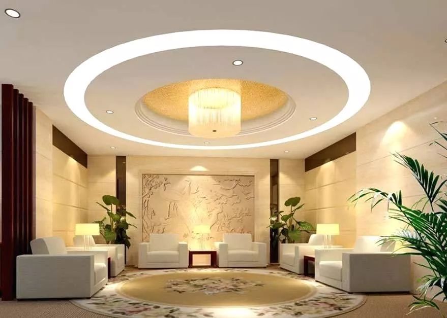 客厅中安装圆形吊顶会给人带来一种亲切感,因为这类吊顶的围合感很强,让我们能够感受到很强的凝聚力,这也是为什么很多大气的豪宅或是庄重奢华的场所经常使用这种设计的原因。