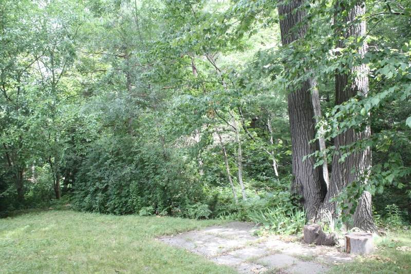 我家房后是溪谷树林,绿树成荫,如入园林。最突出的是有两棵挺拔参天的橡树,应有百年以上树龄,奇的是竟然同根并蒂。听说原民国现台湾驻华盛顿的使馆馆舍就叫双橡园,不知他们可有我这样罕见的“双橡”否?在开始修房的时候,我就同时计划着怎么改进室外的园艺景观,打算建个亭子。位置就选在下图左边那一团灌木(迎春花)之后,绿荫环抱之中。