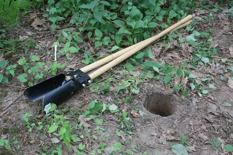 挖桩坑可以租机器,但是也很笨重,还需两人扶持。我在两年前就买了一个挖坑用的双夹铲(我自己命名的),曾经用它挖过扩建阳台的坑,这次还是用它。双夹铲是在下探的同时,可以把土夹出来,据说即使有机器也还要用它掏土。一边操作一边遐想,我想起了王铁人的石油钻井取出岩心,又想到了考古队和盗墓者都离不开的工具洛阳铲。