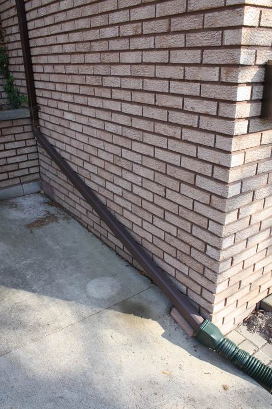 纵向下水管几乎触地,水流到地上。这样,房檐水帘的问题肯定是解决了,这就是前檐流水的一变。这是小事,当时不值得发帖。