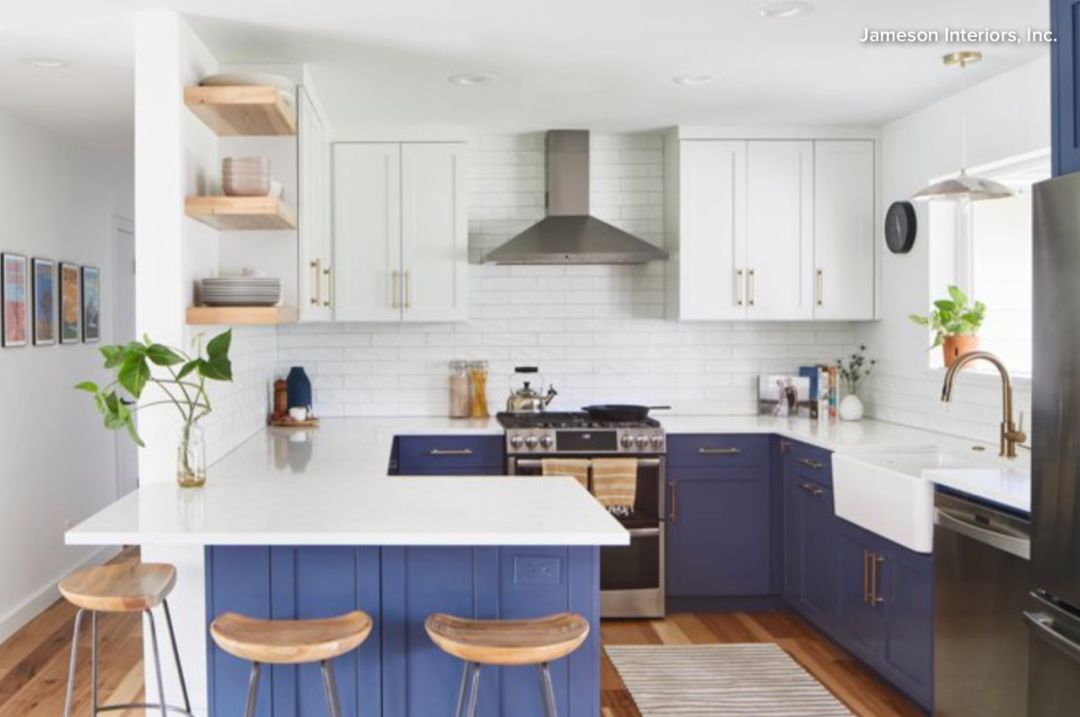 最后,还有一个选择,一个厨房半岛,顾名思义,它不是一个完整的中央岛。“半岛”这个词来自拉丁语,意为“几乎是一个岛”,而“厨房半岛”和“厨房岛”一样都有很多吸引人的地方,只不过半岛的一端与橱柜或墙面相连接。对于小厨房来说,半岛非常的实用,因为他们占用更少的空间。