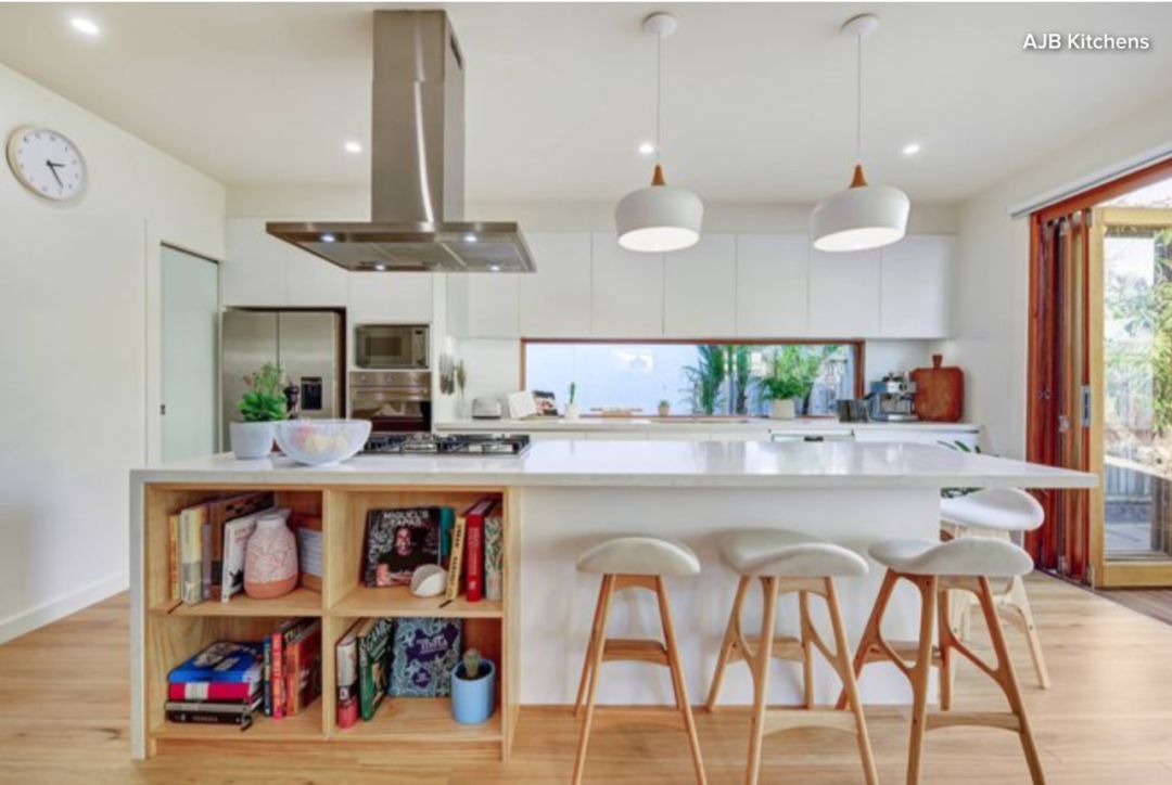 如果从一开始就规划好厨房的中央岛,那么日后它将会非常的高效。这个岛就是一个例子,有座位、储物间、工作区和一个煤气灶。在最大化空间的同时,充分考虑了业主的需求。