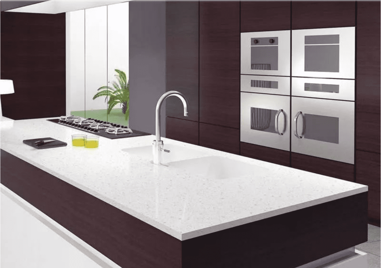 石英石台面是指用石英石做成的橱柜台面,多利用碎玻璃和石英砂制成。石英石台面的优点是耐磨不怕刮划,耐热好可大面积铺地贴墙,拼接无缝,经久耐用。