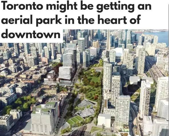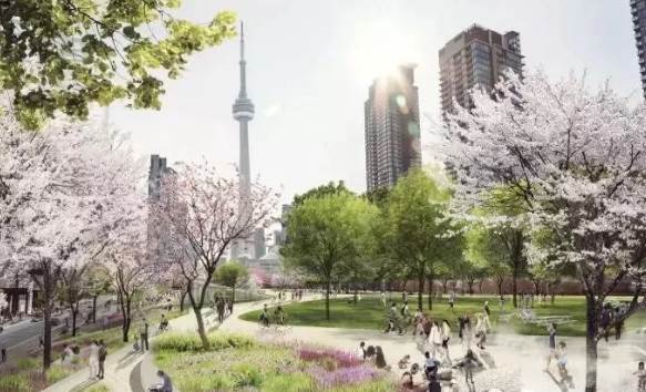 据报道,多伦多或建的这所公园十分“不接地气”,设计将建于Union 车站铁道的顶部!贯穿Spadina Ave 和Blue Jays Way~
