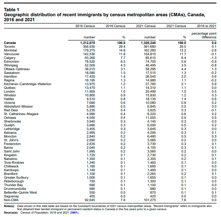 二、超半数新移民流向多伦多、蒙特利尔和温哥华三大城市圈