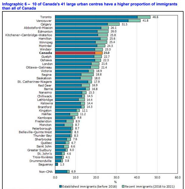 加拿大累计到2021年有超过800万的移民,占总人口的23%,预计到2041年占比将提高到30%左右