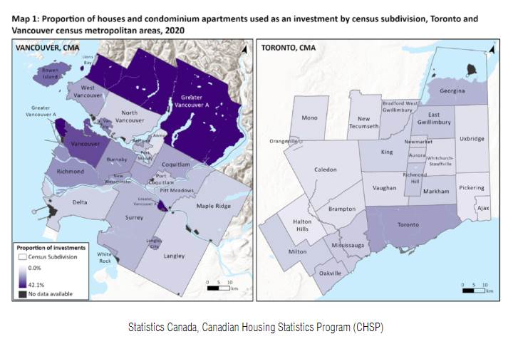 整个大多地区的投资物业比例为 16.3%,但在多伦多市,这一比例为 21.7%。这相当于该市的 112,220 套公寓和 52,935 套房屋被用作投资房产。